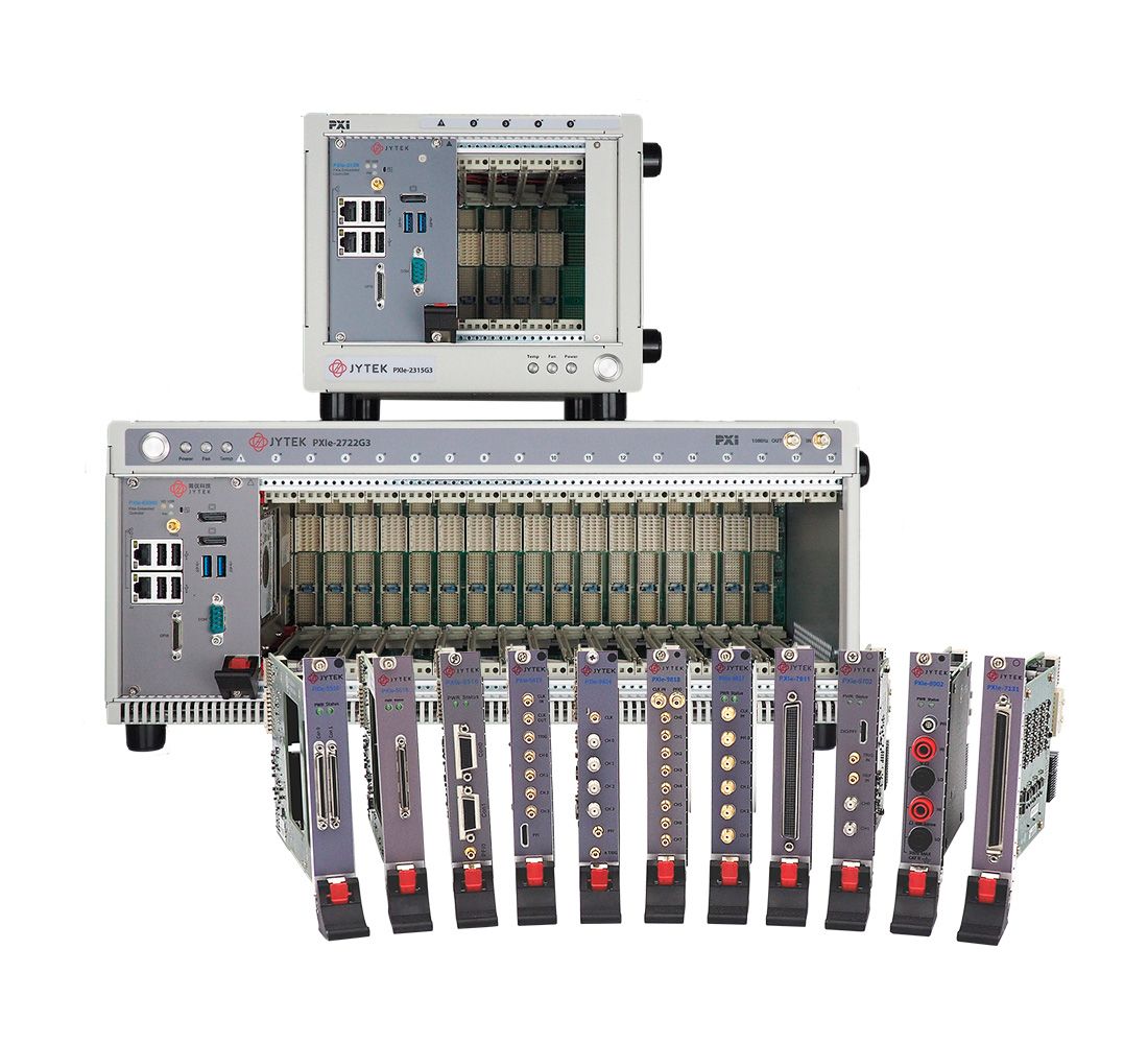 Модули. Включают модули для измерения/формирования сигналов от постоянного тока до 27 ГГц, модули согласования сигналов, цифрового ввода-вывода, программируемые источники питания, модули управления приводами, фрейм-грабберы, модули промышленных и специализированных протоколов и т. д..